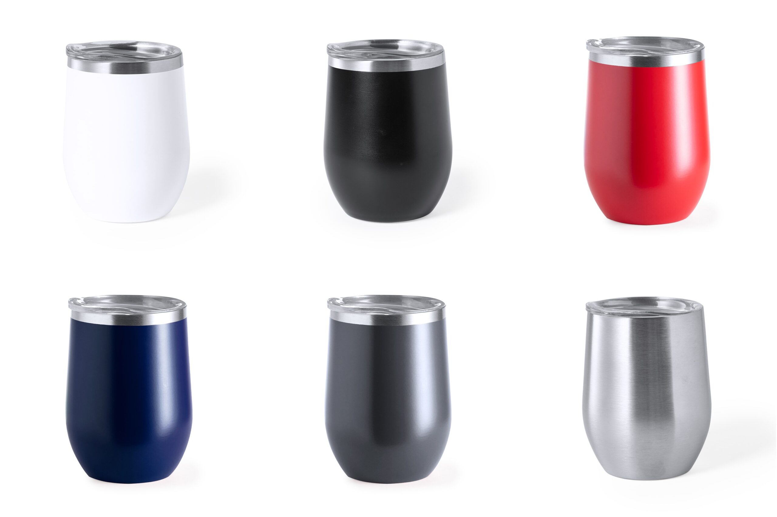 Επιτραπέζιο μονωμένο κύπελλο από ανοξείδωτο ατσάλι, με διπλό τοίχωμα και χωρητικότητα 350ml. Περιλαμβάνει καπάκι με δοσομετρητή. Διατίθεται σε μεγάλη γκάμα χρωμάτων. Παρουσιάζεται σε ένα ελκυστικό κουτί σχεδίασης.