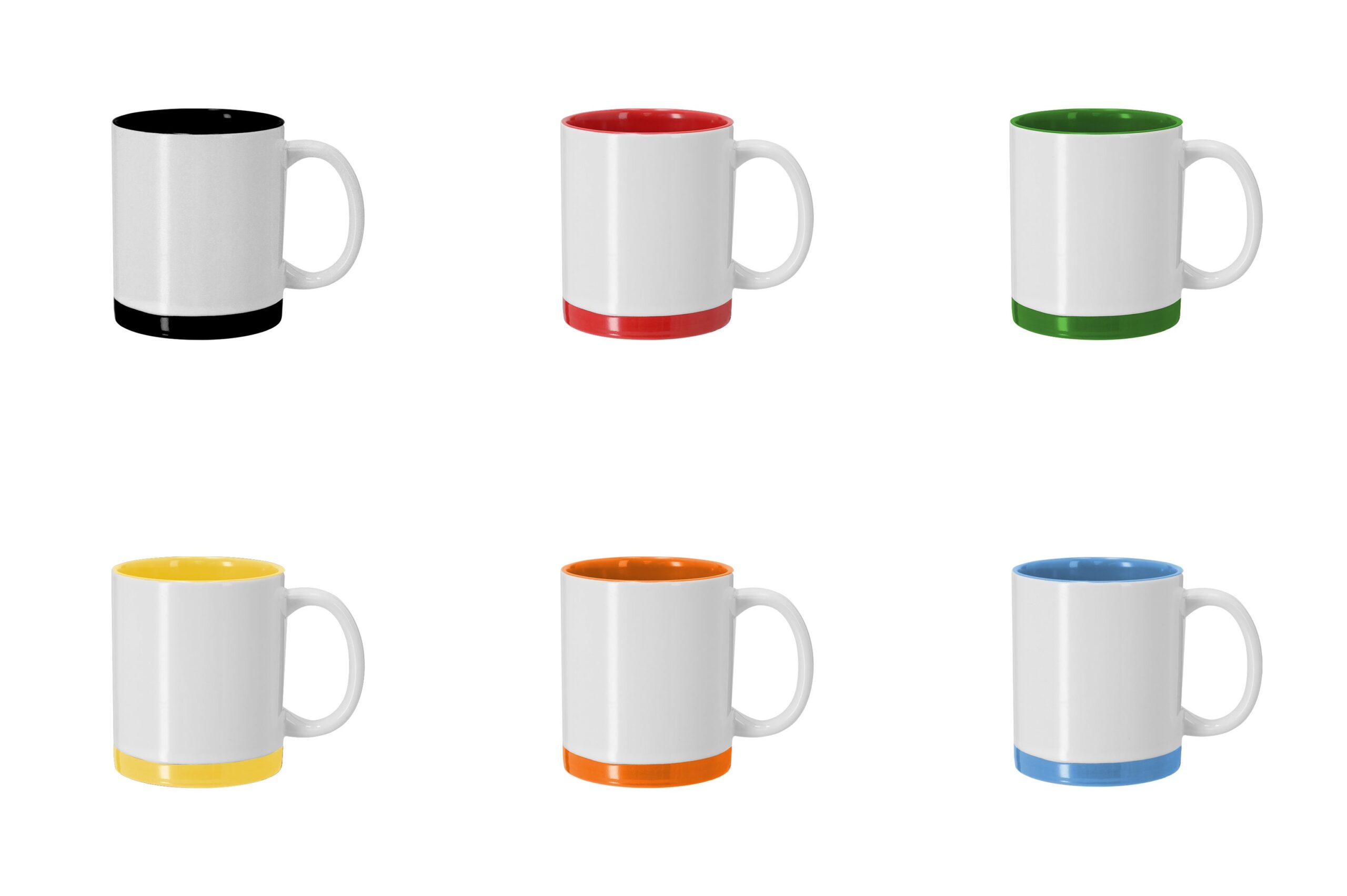 Κεραμική κούπα χωρητικότητας 350ml, σχεδιασμένη με λευκό εξωτερικό και ασορτί χρωματικές λεπτομέρειες στη βάση και στο εσωτερικό. Ειδικά σχεδιασμένο για σήμανση εξάχνωσης.