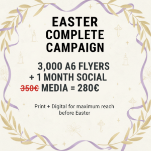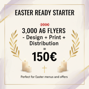 Ξεκινήστε τον Μάρτιο με τις πιο δυνατές προσφορές μας για το Πάσχα! Είτε ψάχνετε να διανείμετε φυλλάδια, είτε θέλετε να ενισχύσετε την παρουσία σας στα social media, έχουμε την τέλεια λύση για εσάς.