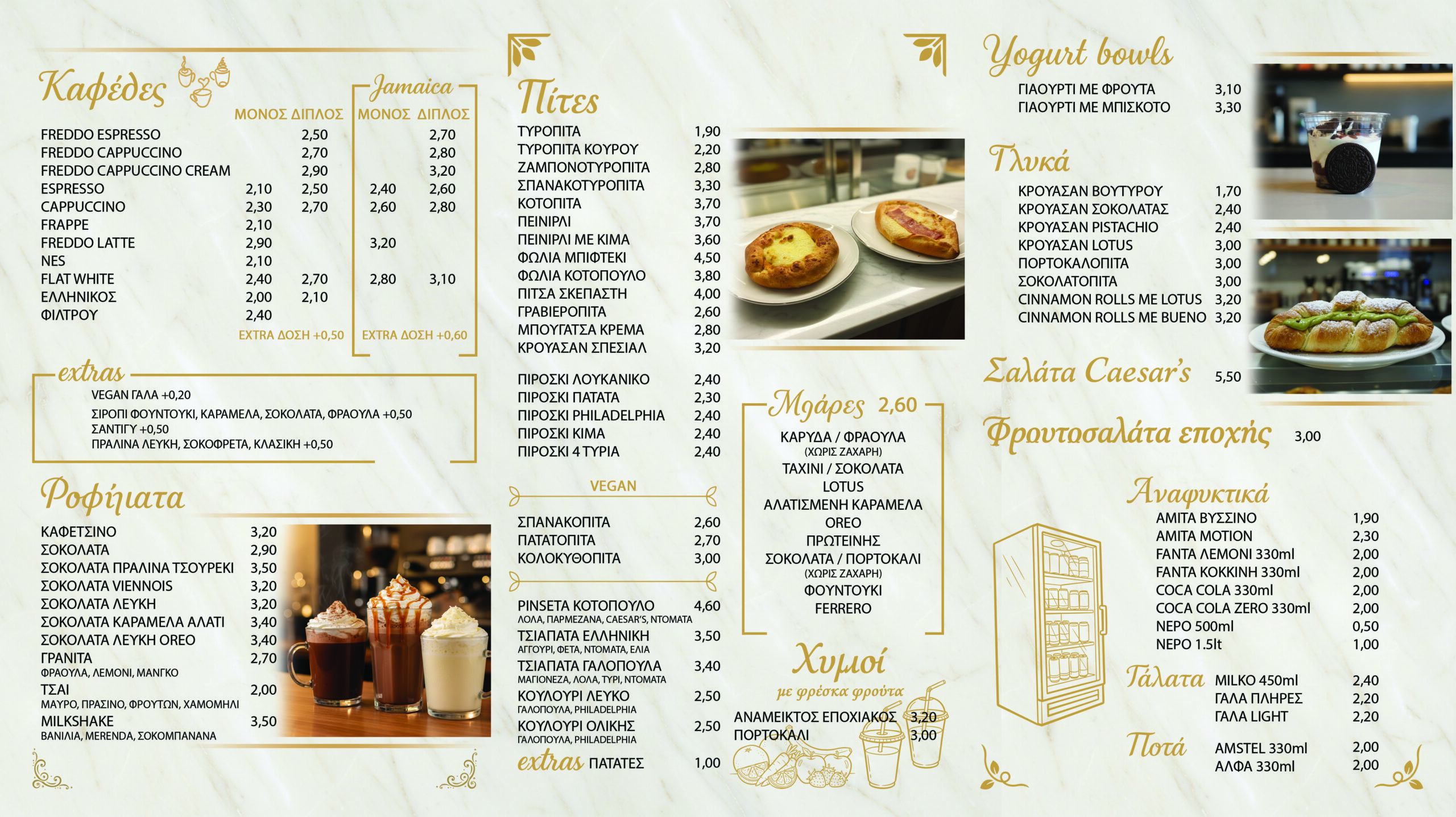 Δείγματα μακετών φυλλαδίου “TRES COFFEE” μεγέθους 40×22 τρίπτυχο